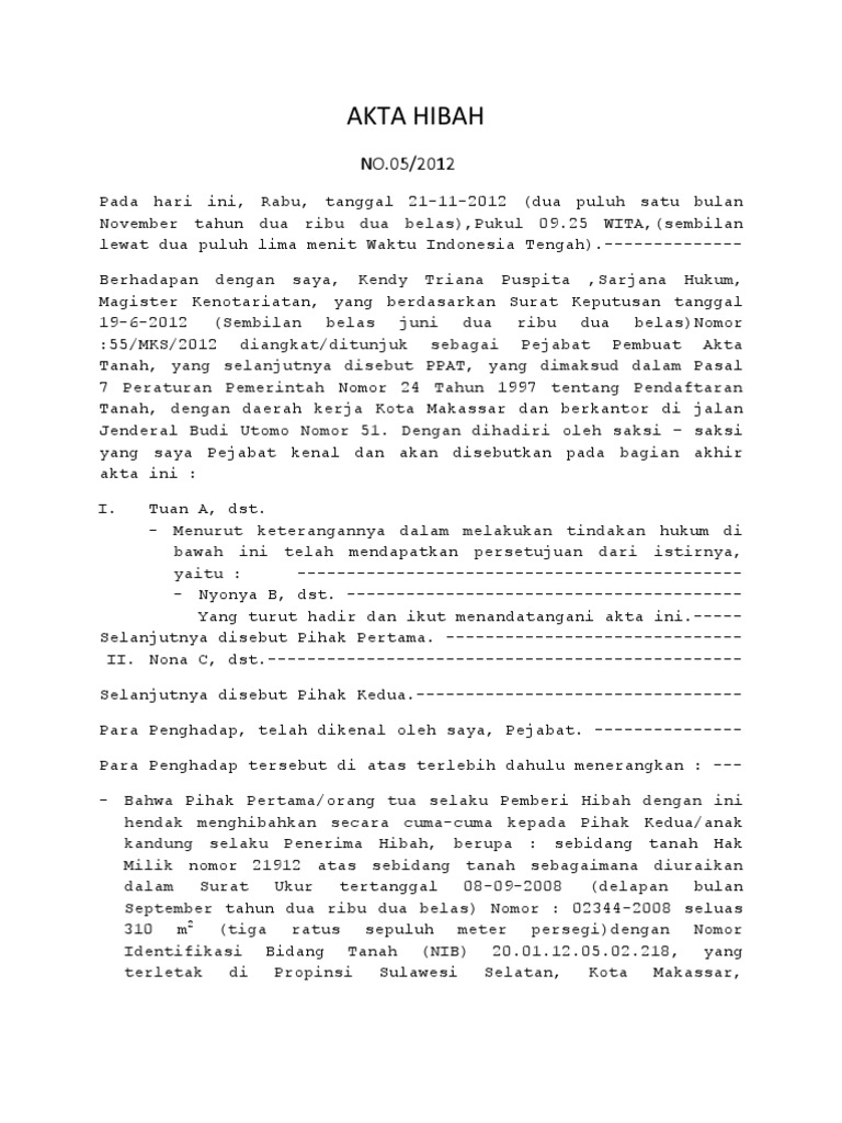 Surat Keterangan Hibah from imgv2-1-f.scribdassets.com Kecuali hibah yang diberikan oleh orangtua kepada anaknya. Contoh surat hibah tanah warisan. Jika penerimaan tidak dilakukan dengan akta hibah, maka surat hibah dari pemberi hibah akan memberikan kejelasan terhadap pembagian atau pemberian harta kepada penerima hibah. Surat pernyataan hibah tanah pada dasarnya menyatakan bahwa tanah yang anda punya sekarang merupakan hasil hibah atau bisa juga dalam kondisi anda menghibahkan tanah milik anda kepada orang lain. Contoh surat warisan tanah dari orang tua kepada anak. …tanpa dapat menariknya kembali, untuk kepentingan seseorang yang menerima penyerahan barang itu. 5 contoh surat jual beli tanah terbaru lengkap suratku. Pihak pertama menghibahkan sebidang tanah kepada pihak kedua seluas 100 m2 (seratus pemberian hibah sudah disertai dengan penyerahan sertifikat tanah serta pengurusan balik nama demikianlah artikel dari pengajar.co.id yang berjudul 5 contoh surat hibah yang baik dan benar.
